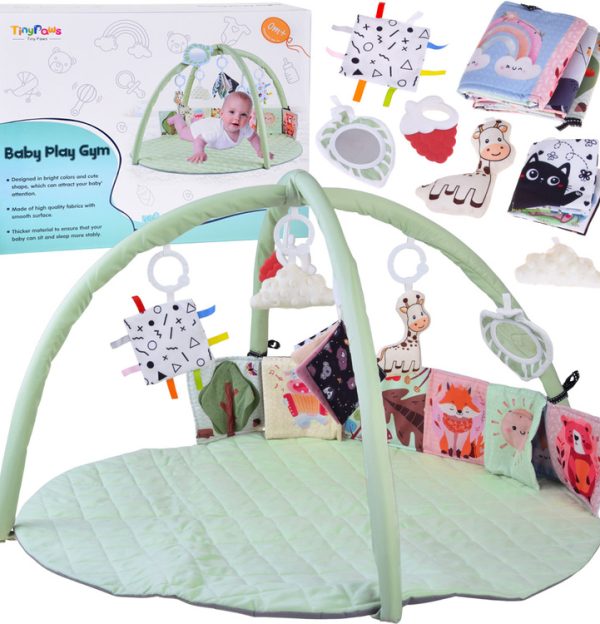 Viseće igračke: zvečke, igračke koje šuškaju. Šipke se mogu otkopčati, baš kao i igračke. Ugodan i mekan materijal omogućuje udobno ležanje na trbuhu ili leđima te omogućuje slobodu kretanja djeteta. Dekica za igranje pruža sigurno i ugodno okruženje i postat će omiljeno mjesto za vaše dijete. Igračke koje visu poticajno će djelovati na pokrete djeteta i inicijativu za pridizanje i oslanjanje na rukice. Višebojna igračka djeluje na razvoj vida, a pokušaju i hvatanje igračaka koje vise razvijaju koordinaciju oko-ruka.