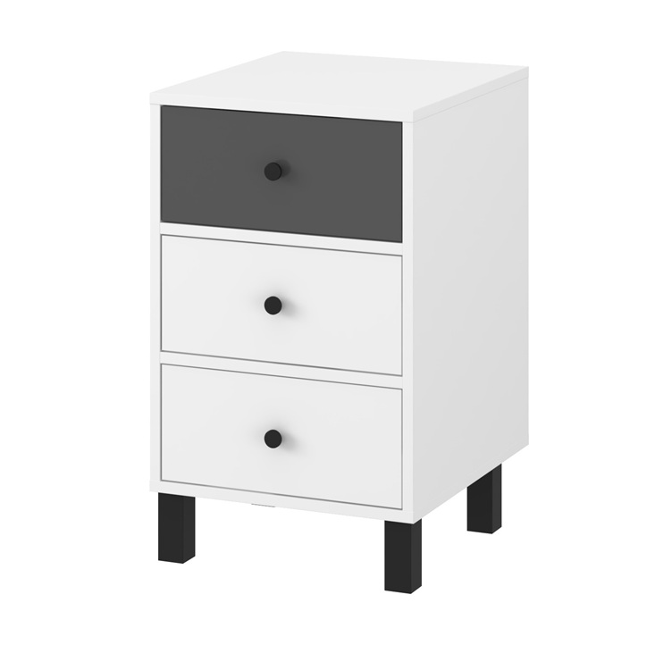 Noćni ormarić T-3, u bijelo-sivoj boji, savršeno kombinira moderni dizajn s klasičnom elegancijom. Kompaktan je i praktičan.