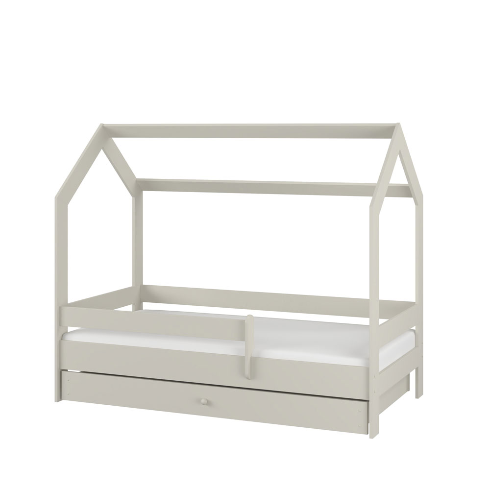 Krevet Little house s ladicom kašmir ima okvir od medijapana (16 mm) i iverala (16 mm) što osigurava maksimalnu stabilnost konstrukcije (spavaća površina kreveta je 160 × 80 cm). Zaštitna barijera može se montirati s desne ili lijeve strane.