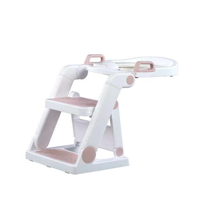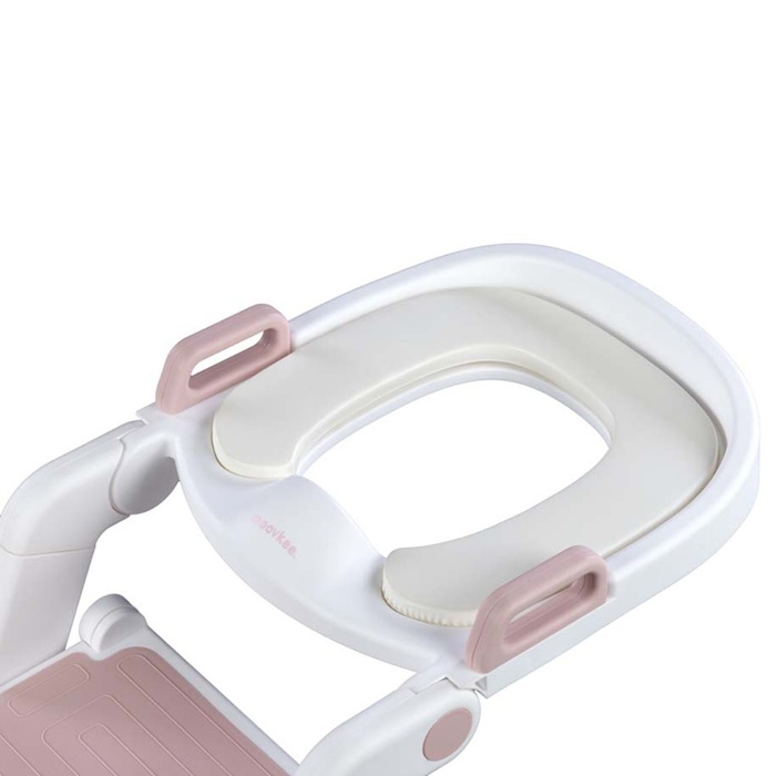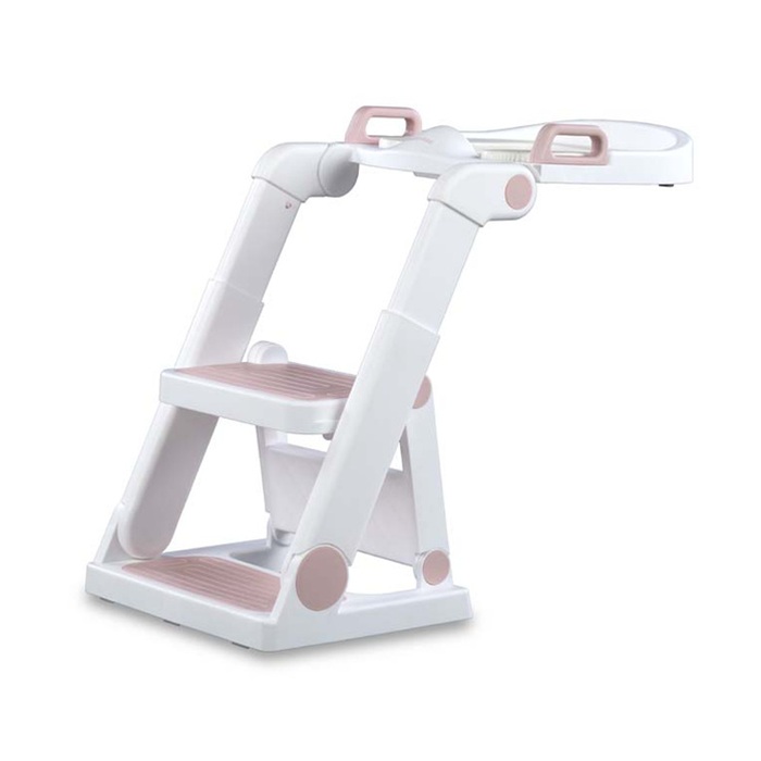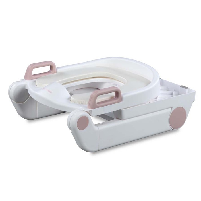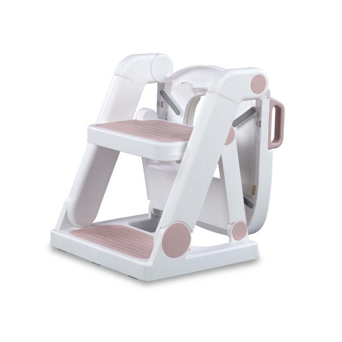 Dječje toaletno pomagalo baby pink sadrži mekani nastavak za WC školjku i ljestve s dva gazišta. Sigurno je i funkcionalno 2-u-1 rješenje koje se može koristiti kao stabilna stepenica ili udobna WC sjedalica. Neklizajuća površina i čvrsta konstrukcija osiguravaju udobnost i sigurnost tijekom svakodnevnih aktivnosti, poput pranja ruku ili učenja samostalnog korištenja kupaonice.