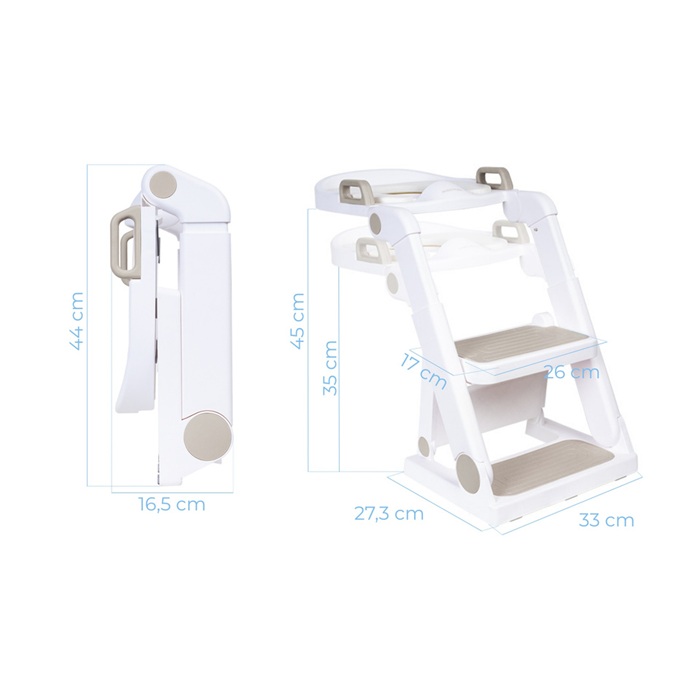 Čvrsta i sigurna konstrukcija dizajnirana je imajući na umu djecu koja uče samostalno koristiti WC. Kada je sklopljena, sjedalica se može koristiti kao stabilna stepenica, idealna za kupaonicu ili kuhinju, potičući dječju neovisnost.