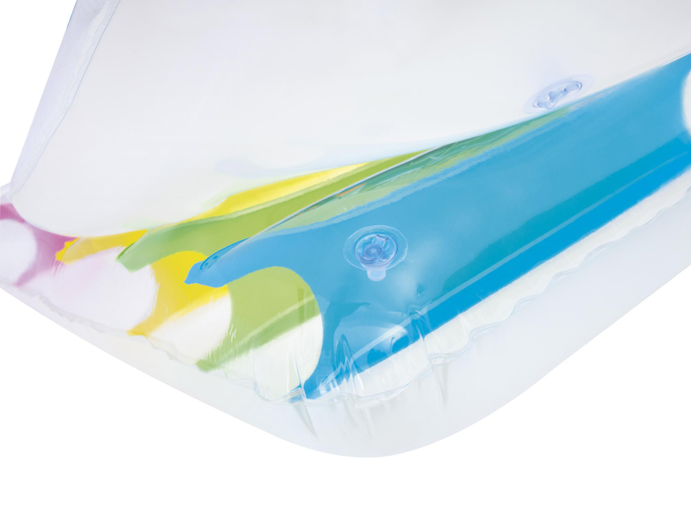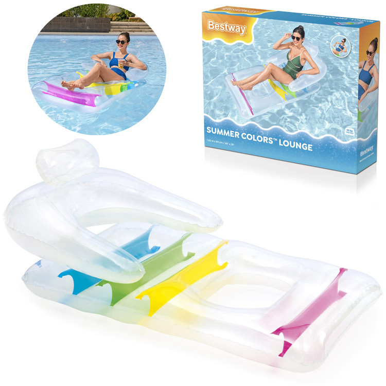 Bestway zračni madrac fotelja je senzacionalni madrac na napuhavanje s naslonom. Bit će savršen za ljetni odmor na moru, jezeru ili u dvorišnom bazenu. Prozirna fotelja s umetcima u lijepim bojama savršeno se uklapa u ljetnu atmosferu, a vrlo je udobna i osigurava maksimalno opuštanje.