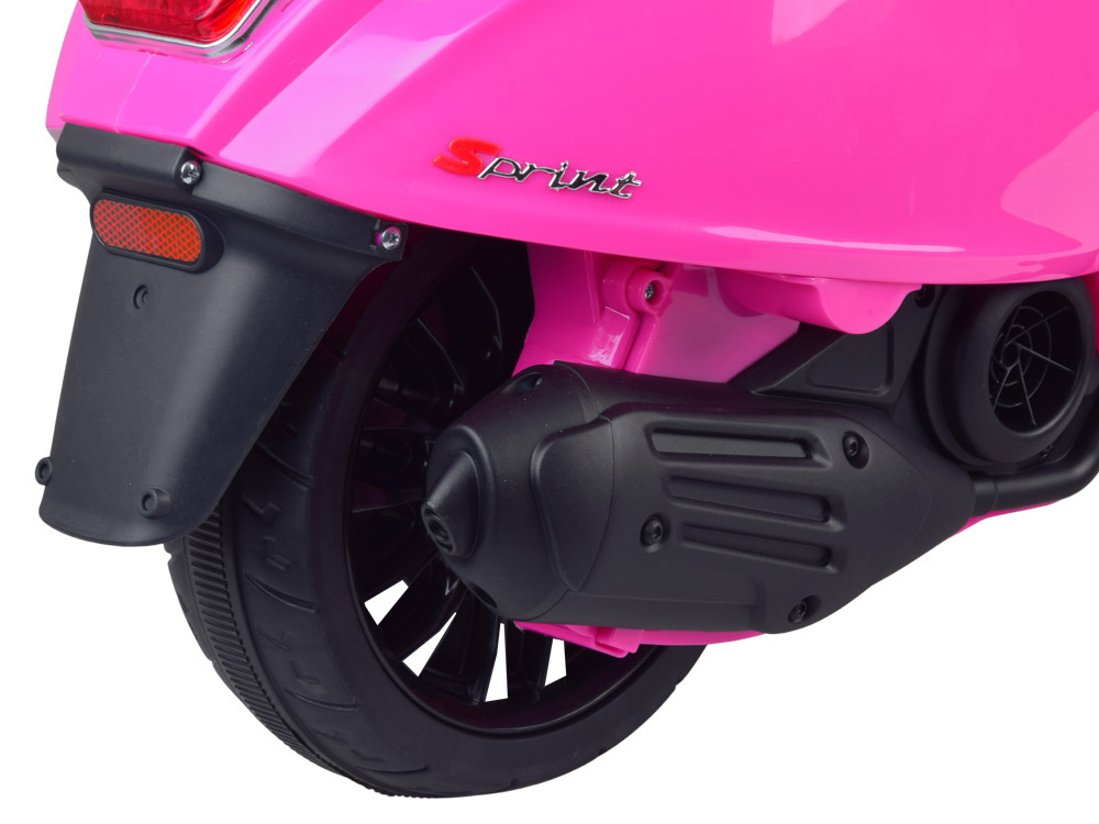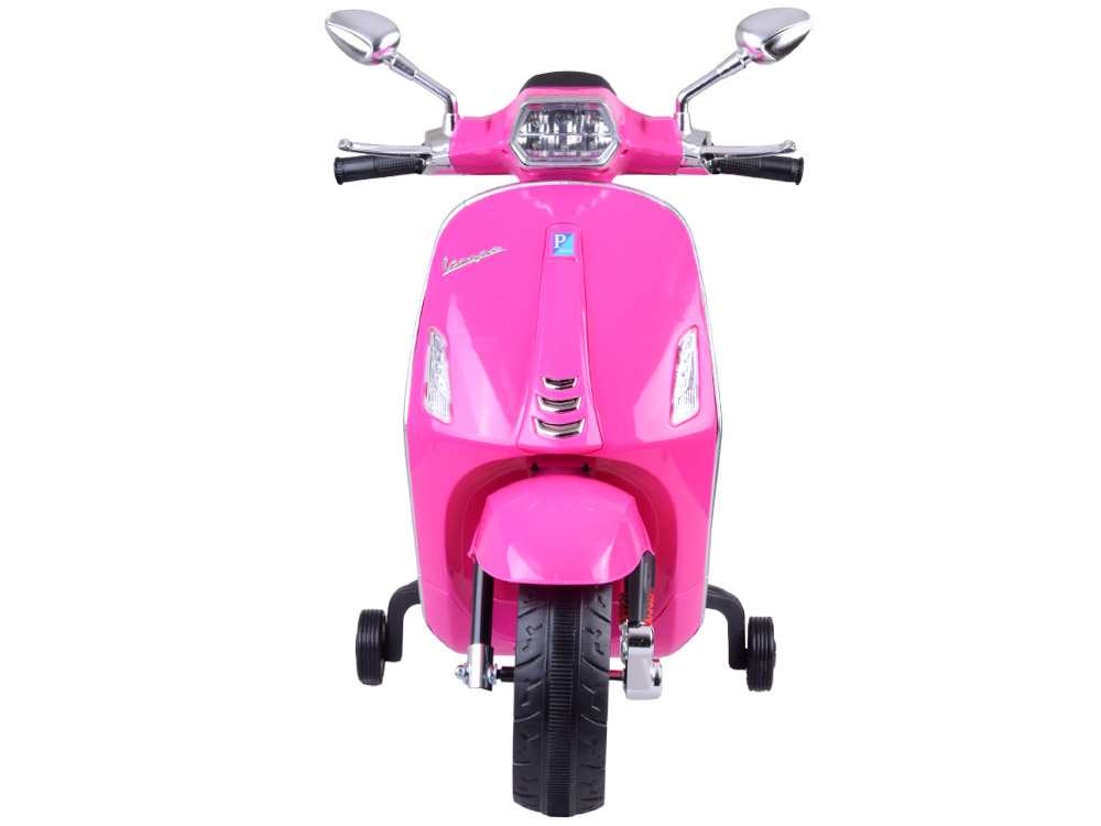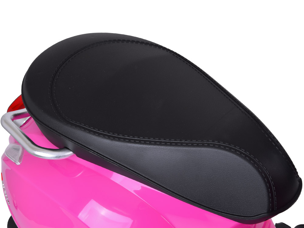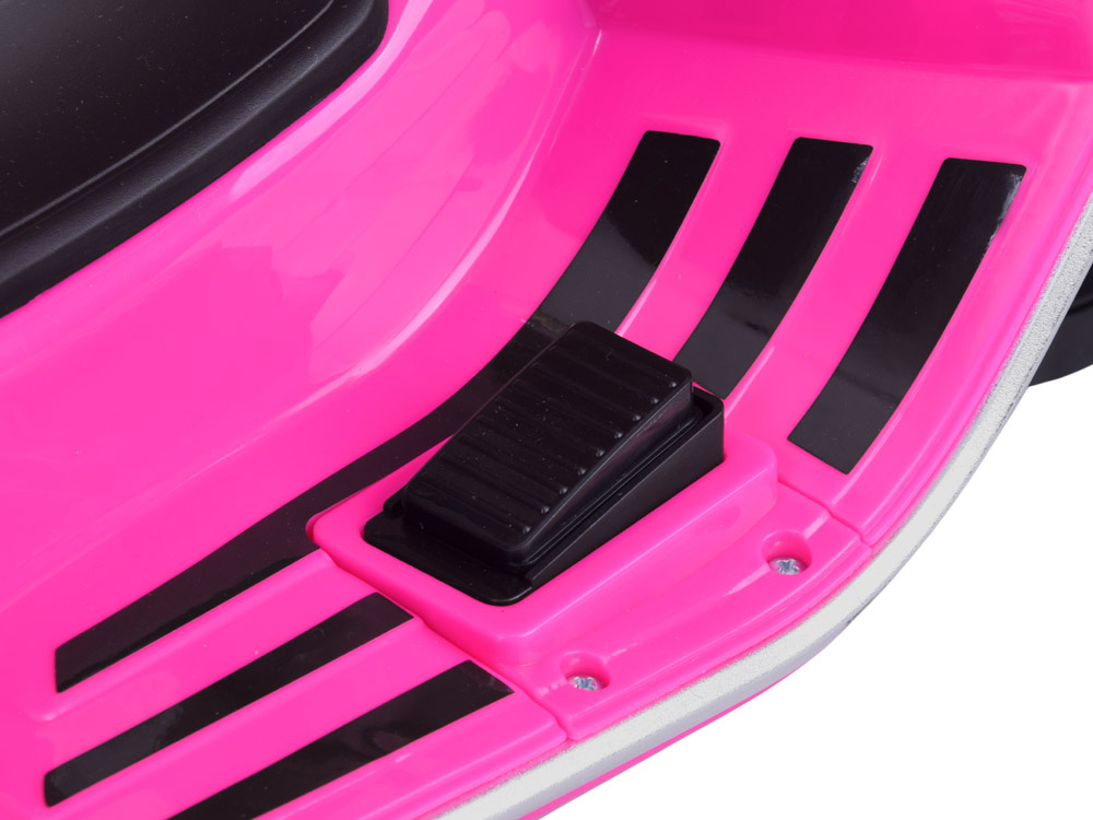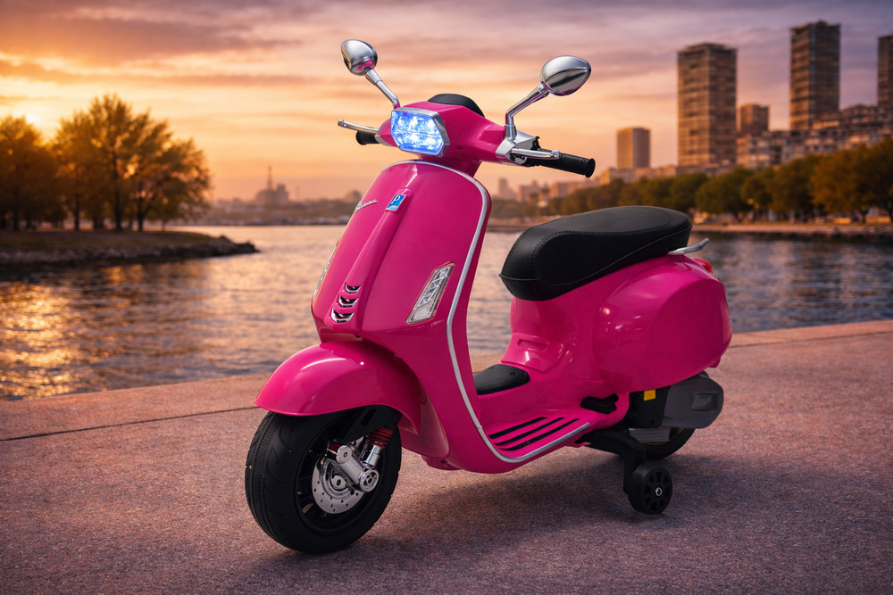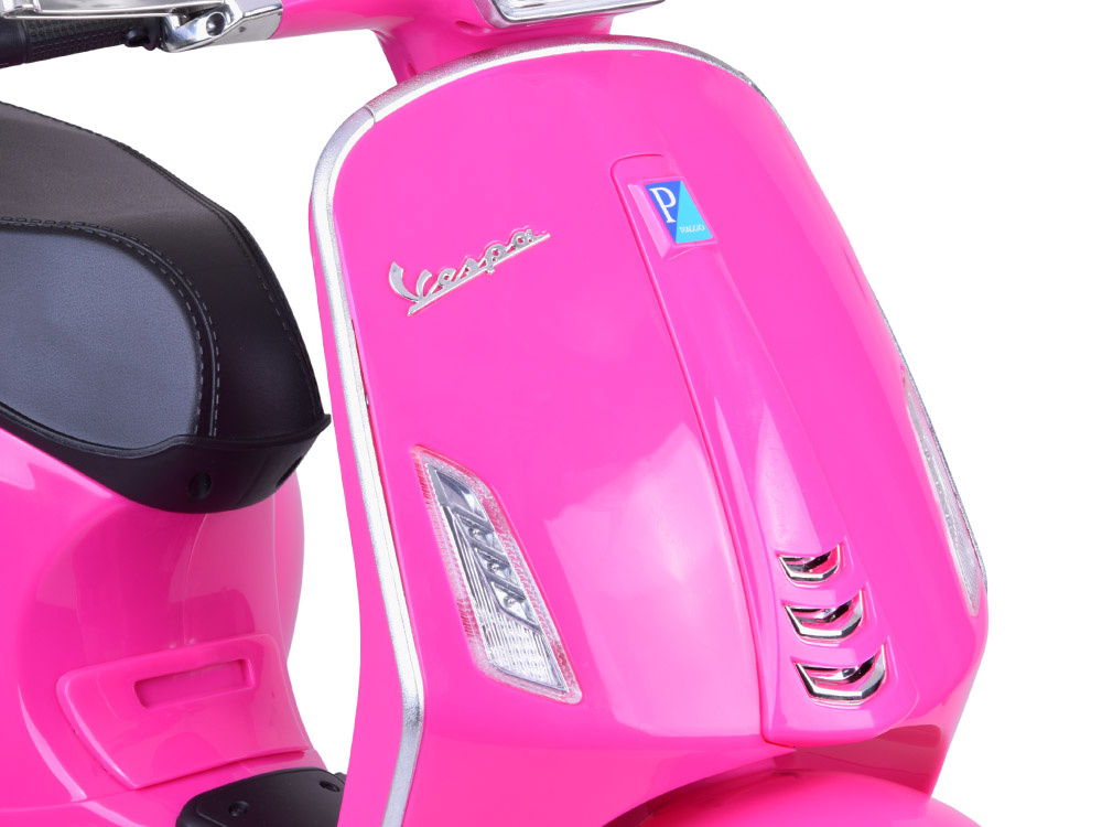 VESPA na akumulator 2×2 roza – ispunite san svog djeteta o vlastitom skuteru i pružite mu jedinstvenu radost vožnje u kultnom VESPA stilu. Ovaj električni skuter za djecu kombinira elegantan dizajn, moderne značajke i realistične efekte koji zabavu podižu na potpuno novu razinu!