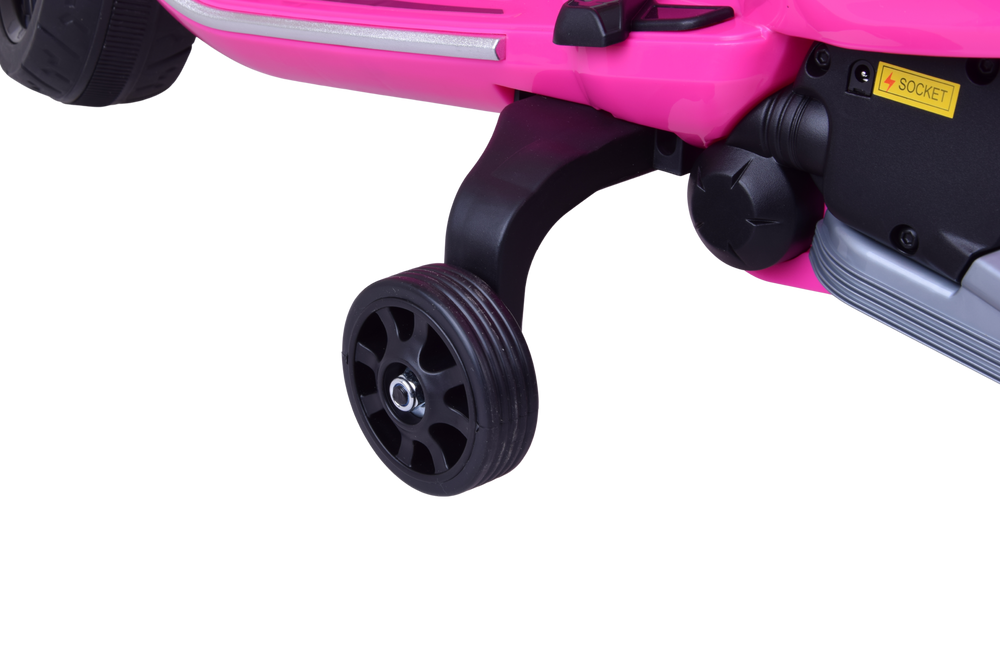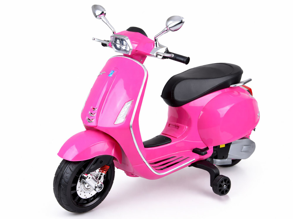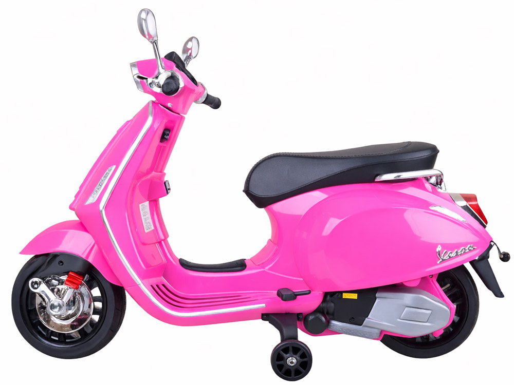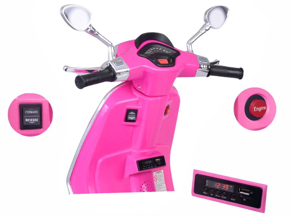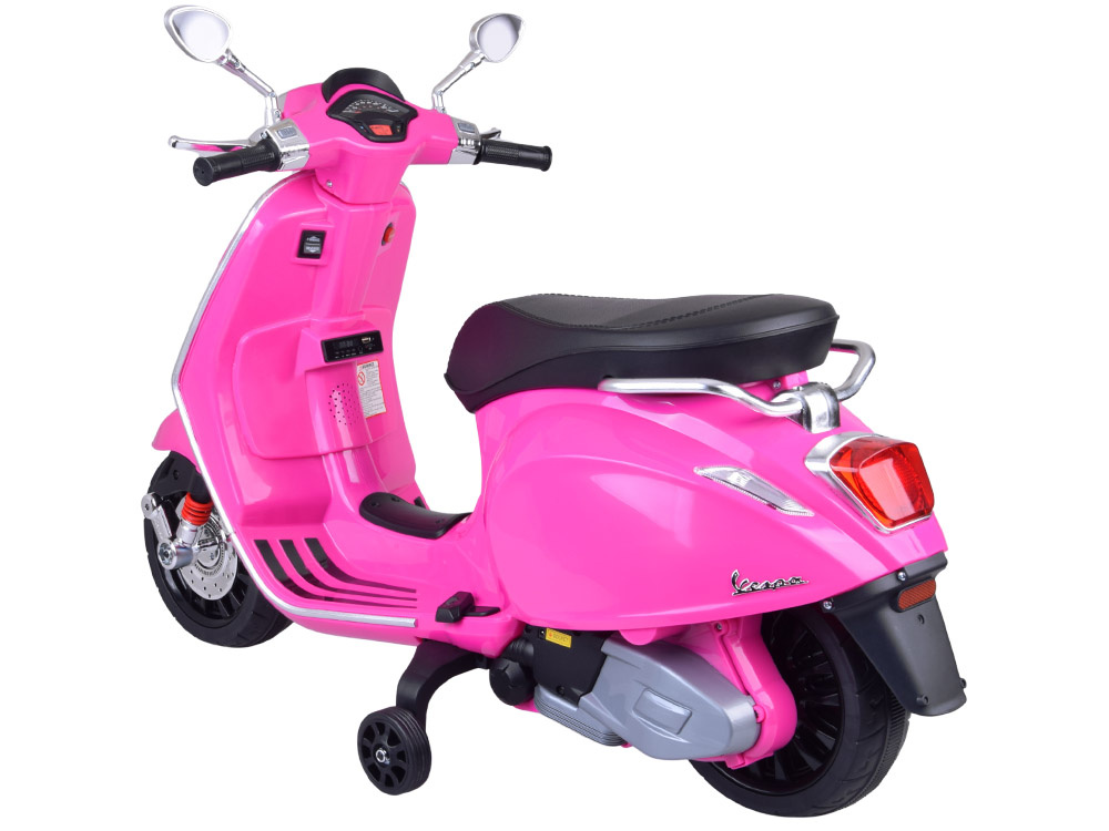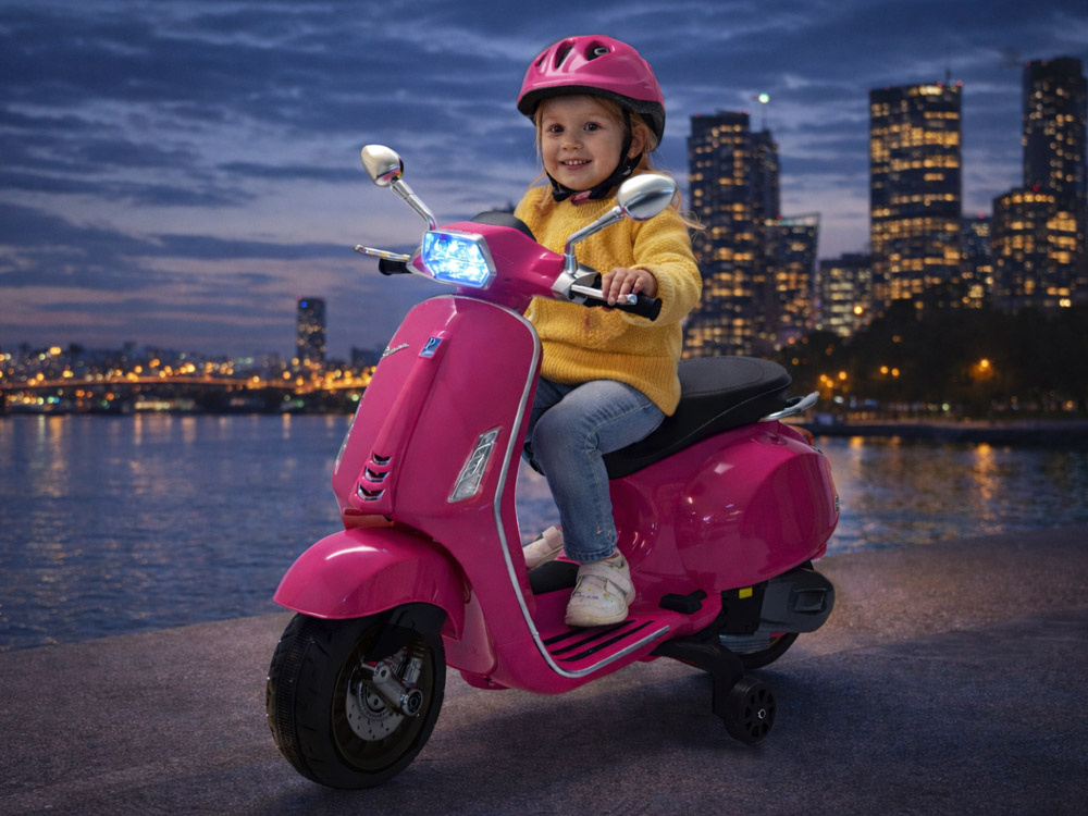 VESPA na akumulator 2×2 roza – ispunite san svog djeteta o vlastitom skuteru i pružite mu jedinstvenu radost vožnje u kultnom VESPA stilu. Ovaj električni skuter za djecu kombinira elegantan dizajn, moderne značajke i realistične efekte koji zabavu podižu na potpuno novu razinu!