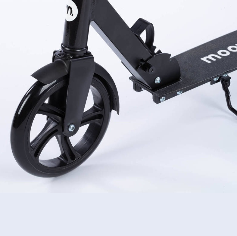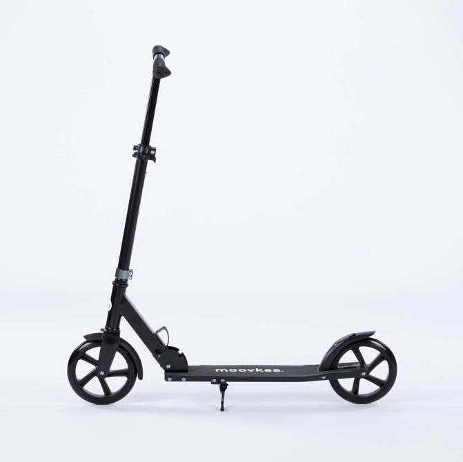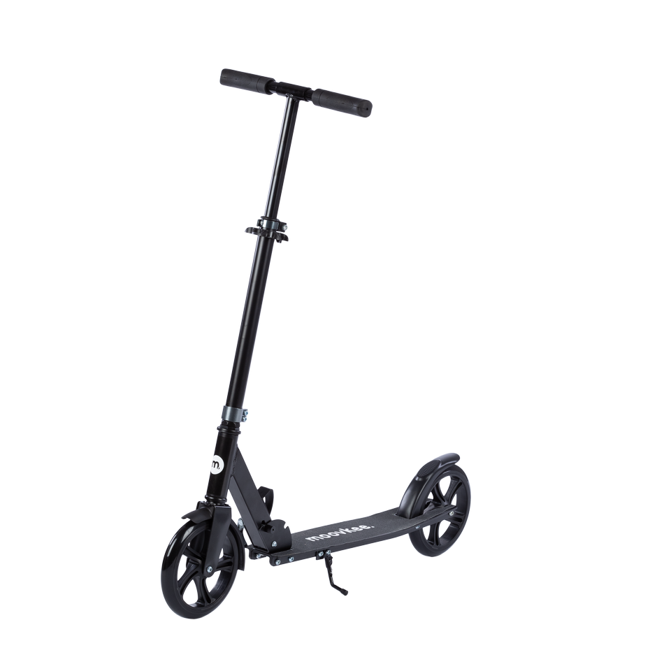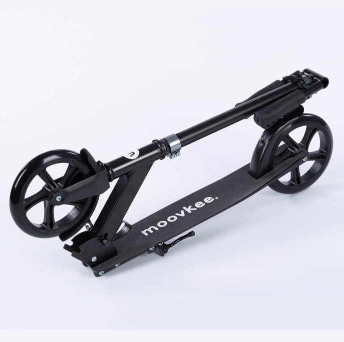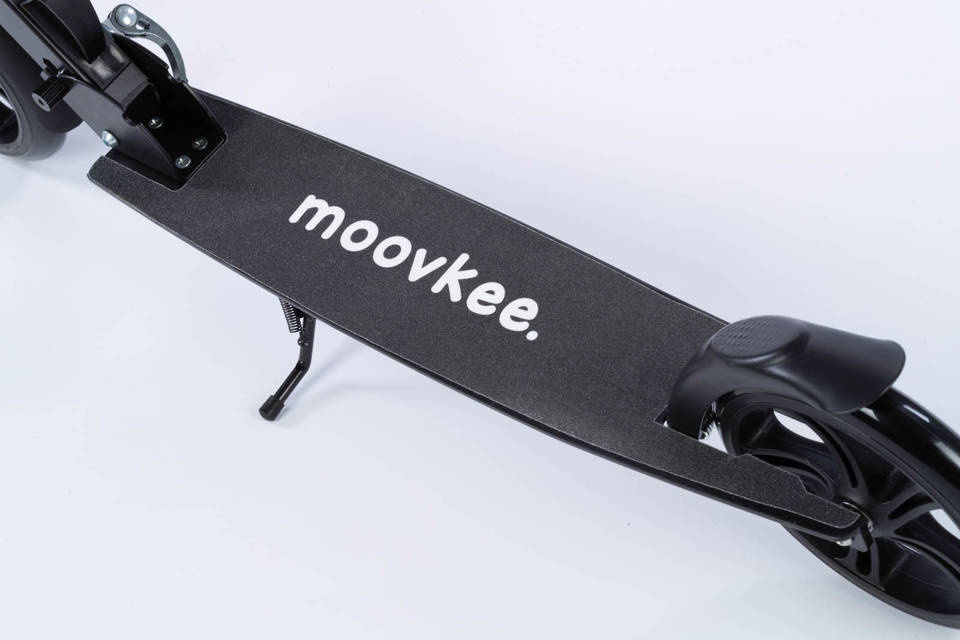 Moovkee sklopivi romobil MAX black (100kg) savršeni je za cijelu obitelj! Veliki sklopivi romobil branda moovkee. MAX u lijepoj CRNO-BIJELOJ boji s nožnim postoljem i velikim kotačima od 200 mm.