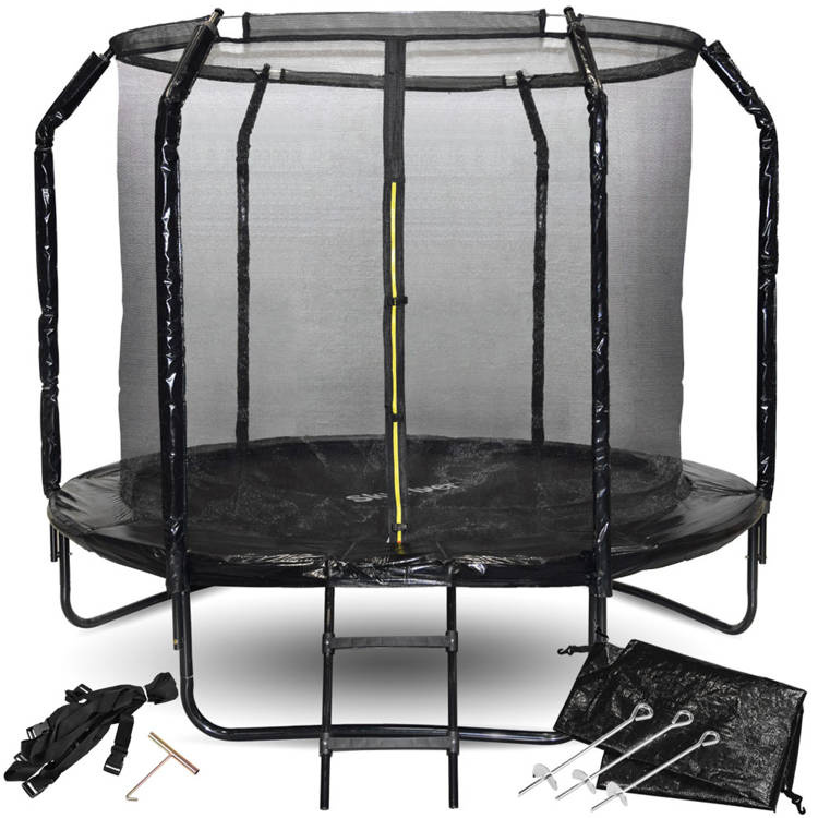 SkyFlyer trampolin crni – 244 cm u vrtu fantastičan je motivator za pokretanje vlastitog tijela! Nema se što čekati – ovaj trampolin omogućit će vama i vašoj djeci da budete u odličnoj formi. Odskočna površina odlična je zabava za cijelu obitelj – daje vam priliku da se dignete s tla, skačete i bezbrižno se igrate. Vježbanje na trampolinima izvrsno je za vaše zdravlje i kondiciju. Kod skakanja na trampolinu rade svi mišići, ubrzava se protok limfe u tijelu zahvaljujući čemu se brže uklanjaju toksini i lakše apsorbiraju hranjive tvari u stanicama koje se kasnije pretvaraju u energiju. Istraživanja su pokazala da je skakanje na trampolinu 68% učinkovitije od trčanja! Trampolin je odličan za djecu, ali i za njihove roditelje.